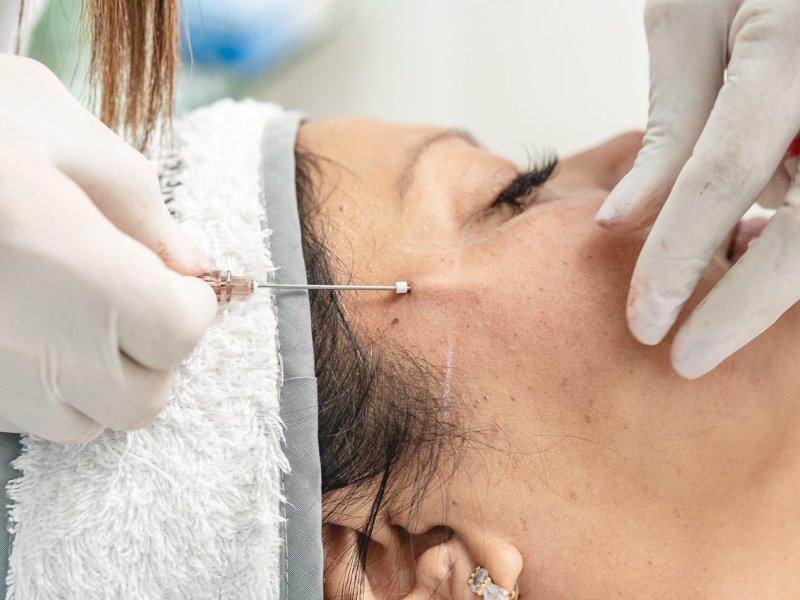 Durante el procedimiento, se aplica anestesia local para asegurar la comodidad del paciente. Luego, los hilos se insertan mediante una microcánula en las zonas previamente marcadas. La duración total suele ser de entre 30 y 45 minutos.